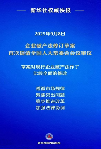 2025年9月8日,十四屆全國人大常委會第十七次會議對《企業(yè)破產(chǎn)法(修訂草案)》進(jìn)行了首次審議。該修訂草案共16章216條,在現(xiàn)行法律基礎(chǔ)上實(shí)質(zhì)新增和修改條文160余條,是一次全面而系統(tǒng)的修訂。