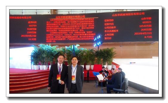 2015年天禾律師事務(wù)所證券上市法律服務(wù)業(yè)務(wù)捷報頻傳。4月23日,由天禾律師事務(wù)所擔(dān)任發(fā)行人律師的山東華鵬玻璃股份有限公司首次公開發(fā)行人民幣普通股(A股)股票在上海證券交易所主板掛牌上市。證券簡稱為“山東華鵬”,證券代碼為“603021”。該項目經(jīng)辦律師為本所合伙人喻榮虎、祝傳頌律師。